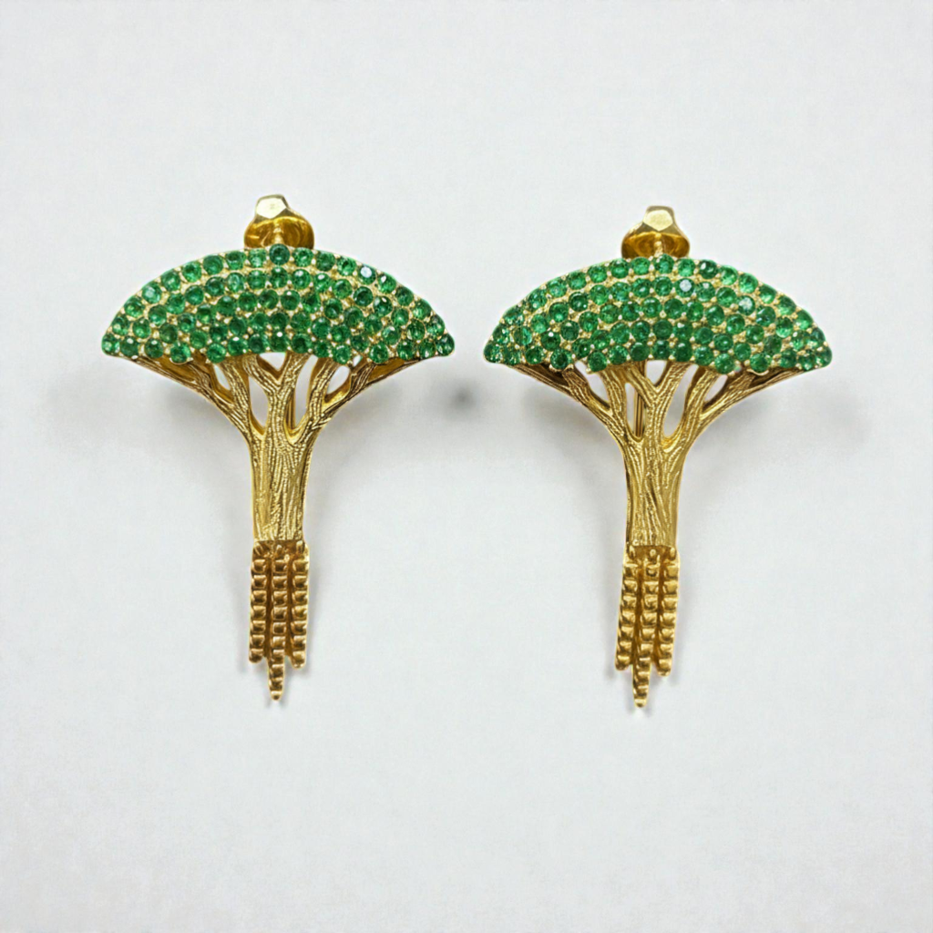 Inspired by the Socotra Dragon Tree, this necklace, earrings, and ring set blends heritage with quiet luxury. Made in silver with gold plating, it offers a warm, luminous finish with a distinctive symbolic touch.